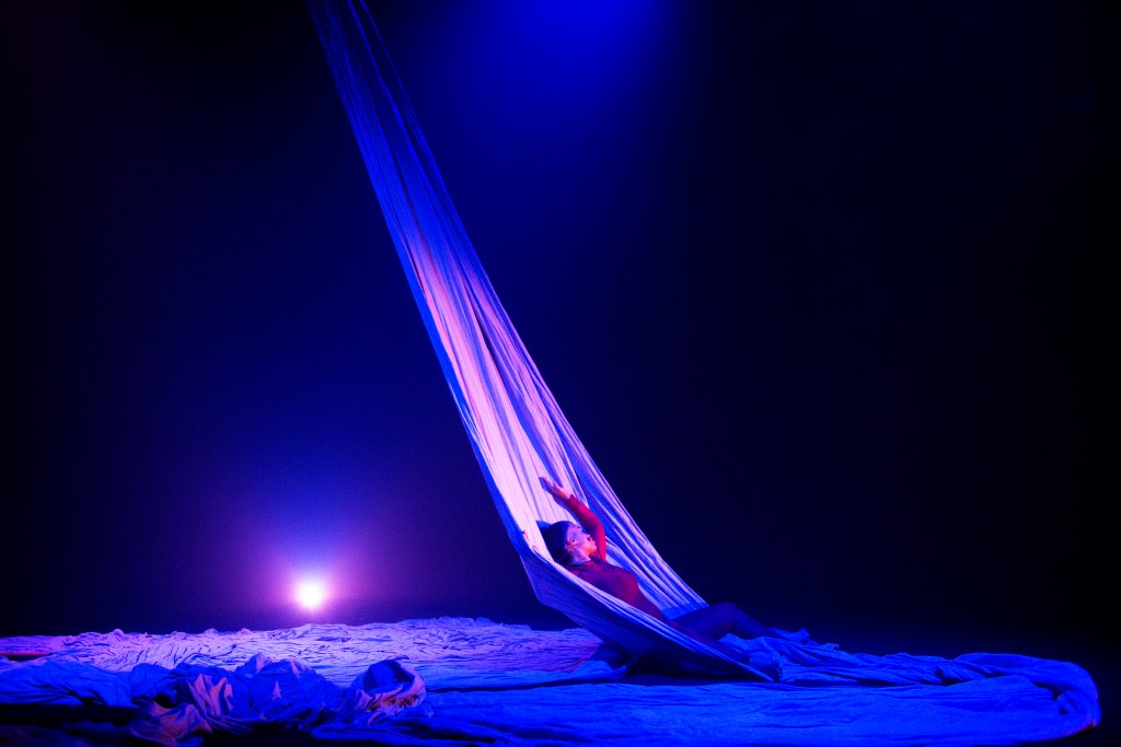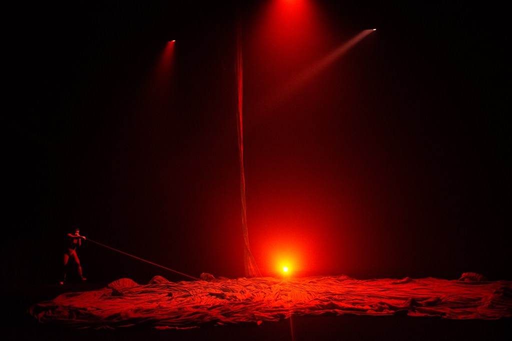 Det är sällan man ser ett soloverk med en sådan monumental känsla som här. Inte bara beroende på dess mäktiga scenografi, ljud och ljus utan framför allt på Suelem de Oliveria da Silva. Hon är ingen trådsmal, eterisk varelse. Hon är snarare en junonisk kombination av Venus och Sisyfos. Hon rör sig ömsom som i seg materia, hårt arbetande och kämpande mot elementen, ömsom med en utlevande sensualism. Ibland ser det ut som hon vill krypa ur skinnet (eller sin röda kroppstrikå). Rätt vad det är liknar hennes gester en prästinnas besvärjelser. Här finns människosläktets öde och villkor ‒ arbete, kärlek, religion ‒ framställt i en och samma gestalt i komprimerad form.