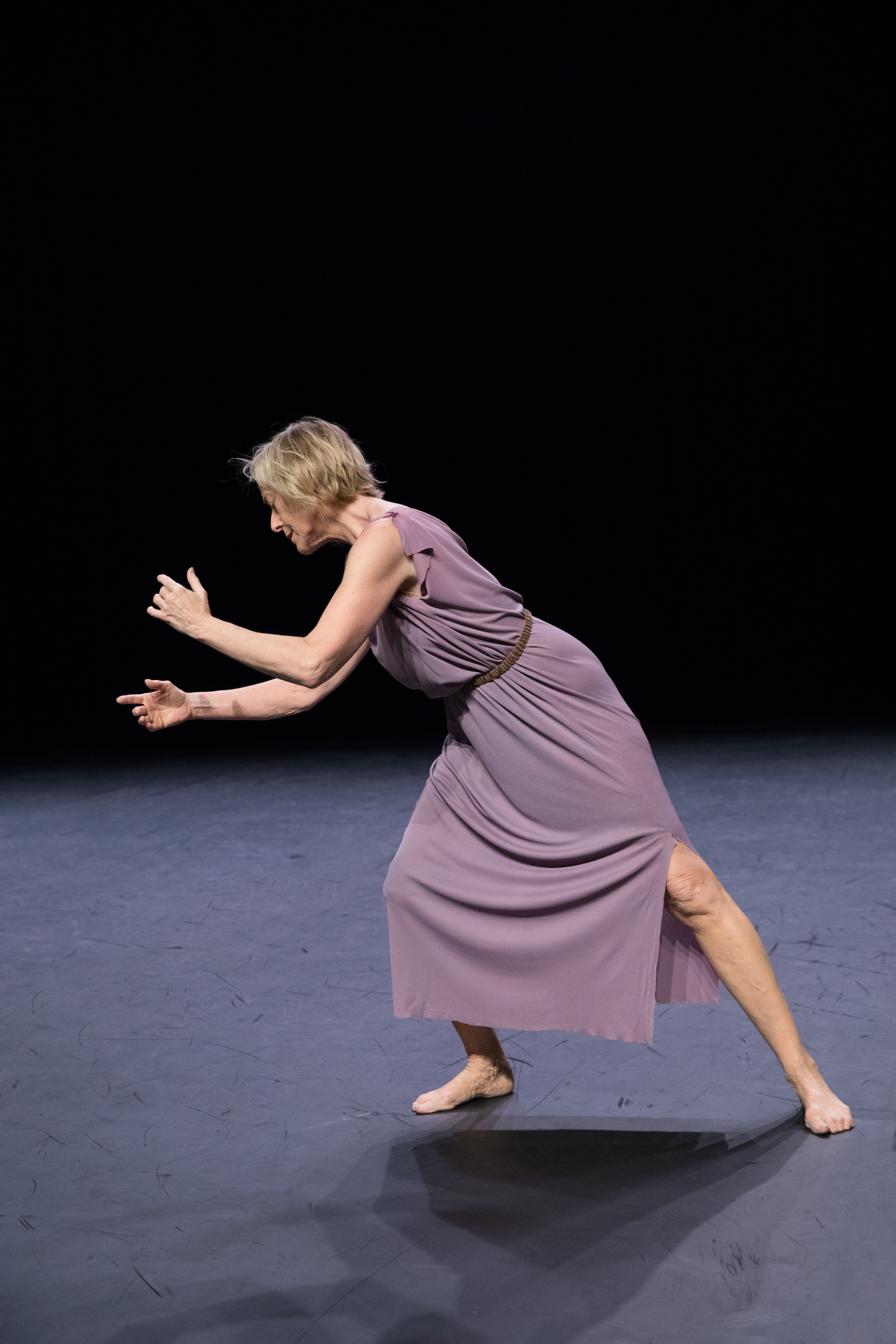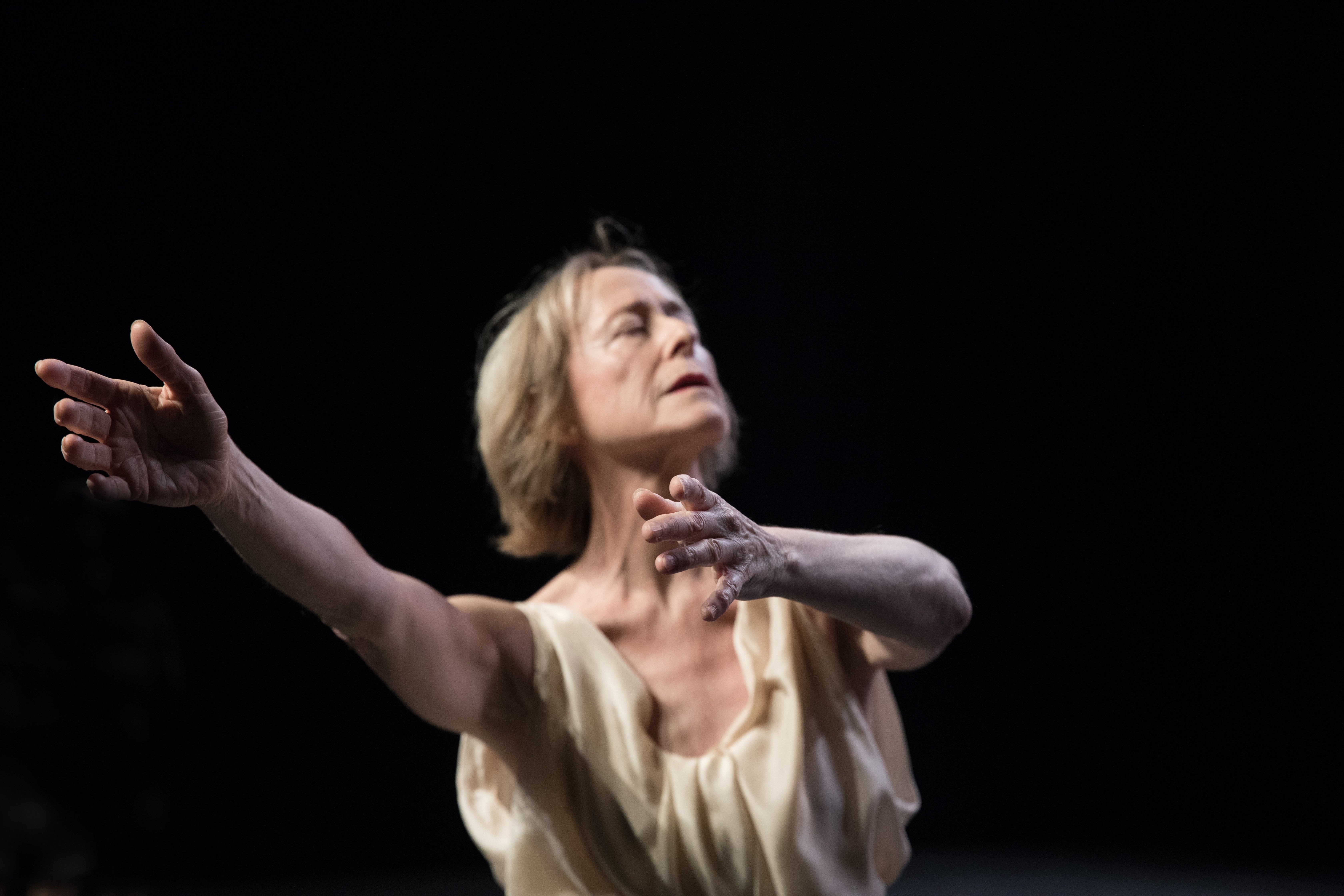Isadora Duncan. Ges på Dansens Hus till och med 6 november 2021. Koncept: Jérôme Bel. Medverkande: Elisabeth Schwartz. Foto ur föreställningen: Véronique Ellena.