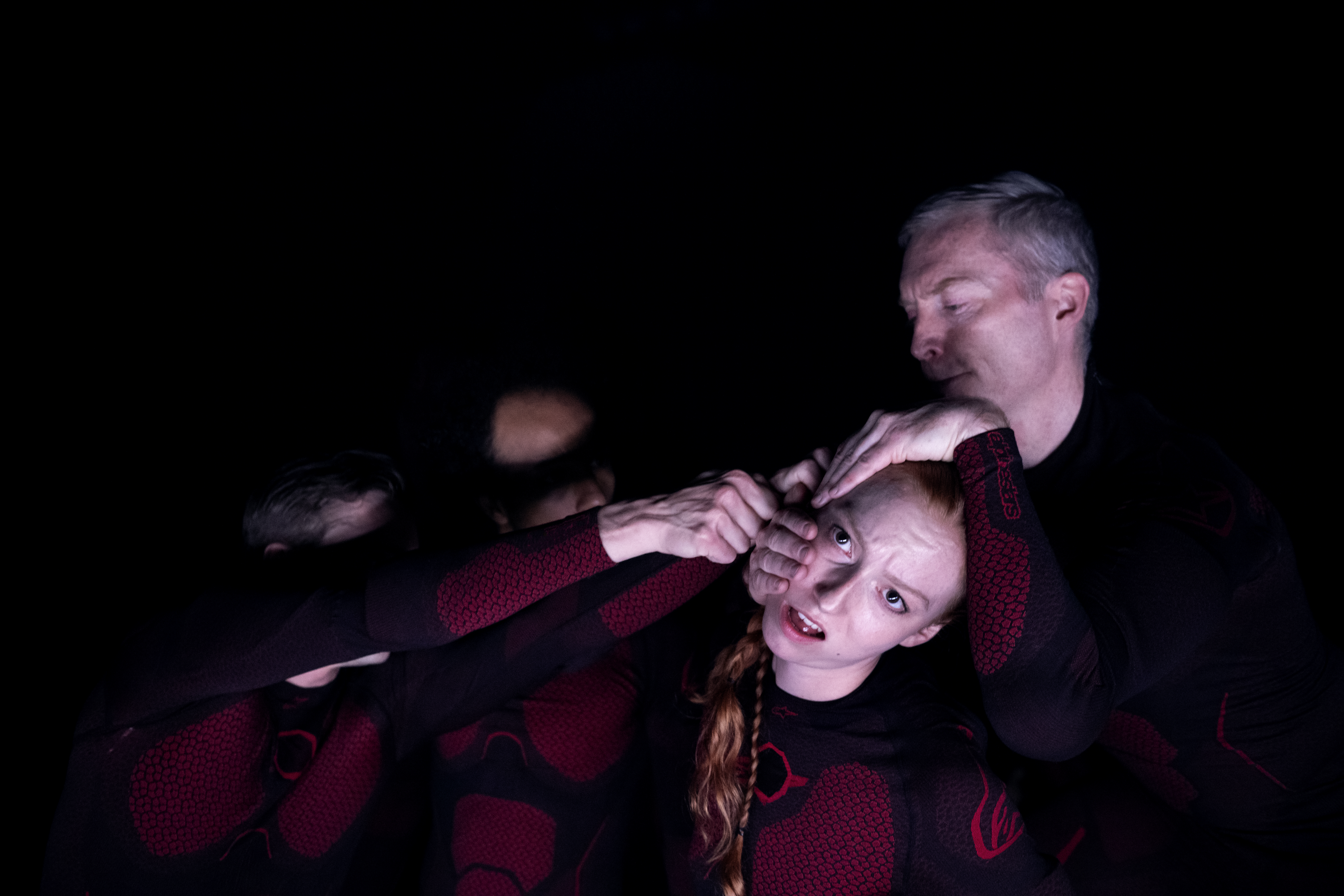 De gåtfulla (och eventuellt något korkade) människoliknande varelserna från forntiden eller framtiden kryper, ålar fram som en amorf massa, ibland som en maskin, ofta vilt gestikulerande. Ibland ser de ut som självplågande flagellanter. Ibland plågar de andra. Vid något tillfälle opererar de mer ordnat på varandra. Den klärobskyra ljussättningen för tanken till både Caravaggio och Rembrandt.