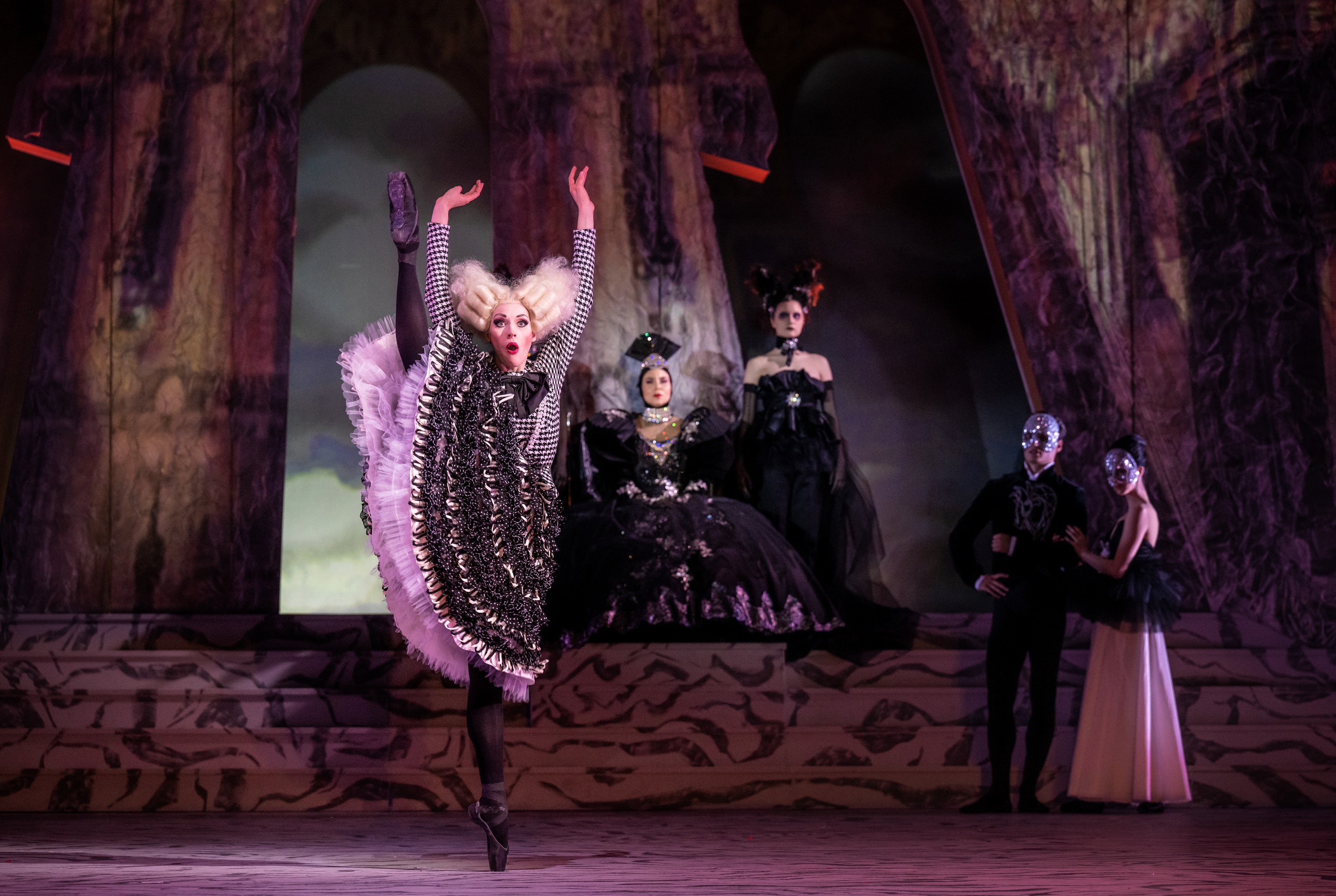 De elaka styvsystrarna, styvt dansade av Natalie Ogonek och Kaho Yanagisawa, i denna uppsättning döttrar till barnhemsföreståndaren, har Lacroix klätt i ilsket cerise och ondskefullare svarta rosetter än deras har väl aldrig tillförne skådats. Barnhemsföreståndaren, i Daria Ivanovas burleska och underbart galna gestaltning, bär en svartvitrutig överdel med rosett och pärlor à la Coco Chanel. Ivanovas mångsidighet verkar inte ha några gränser och hon visar här att hon kan blomma ut också som karaktärsdansare. Hon är kvällens clou och man vill bara ha mer.