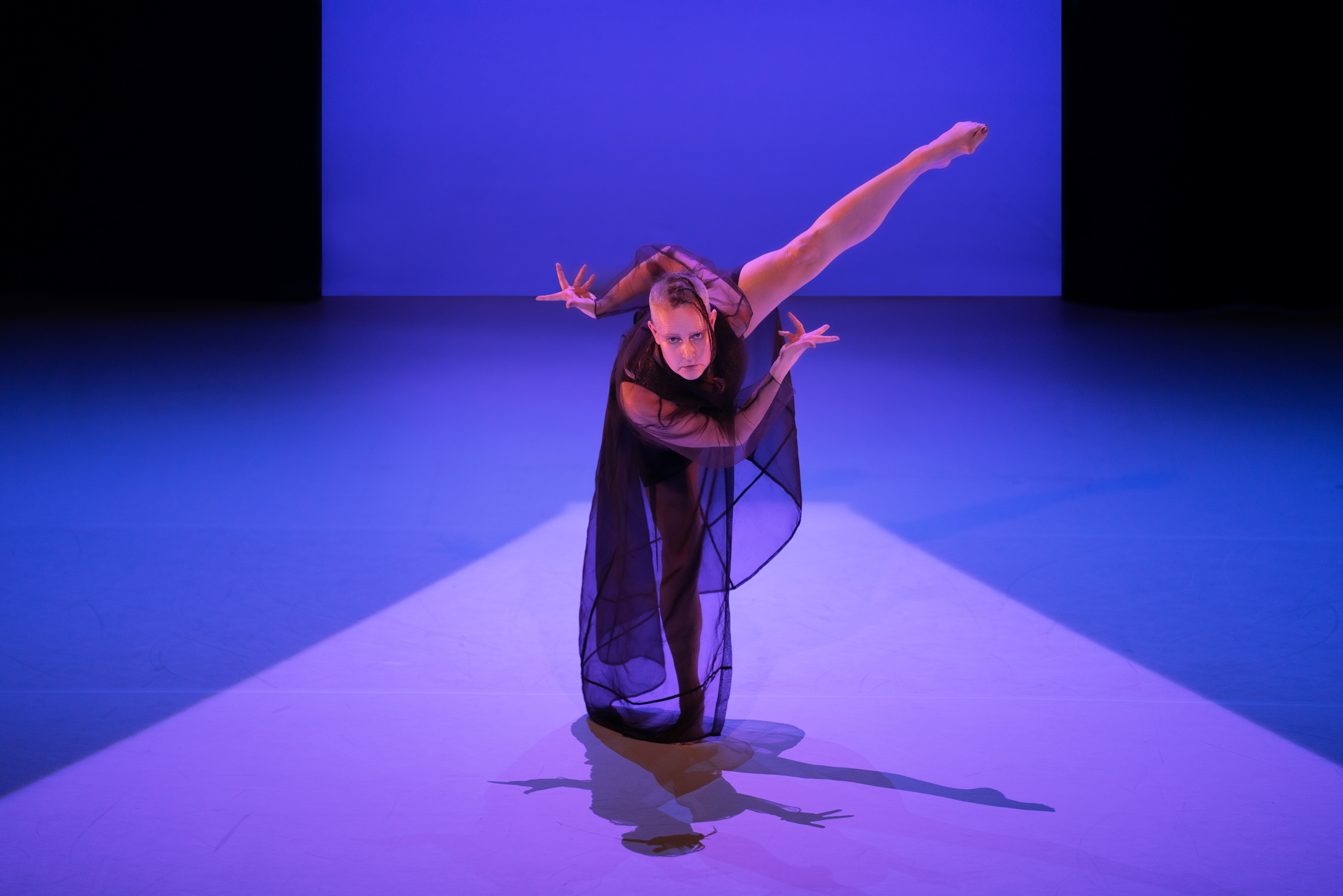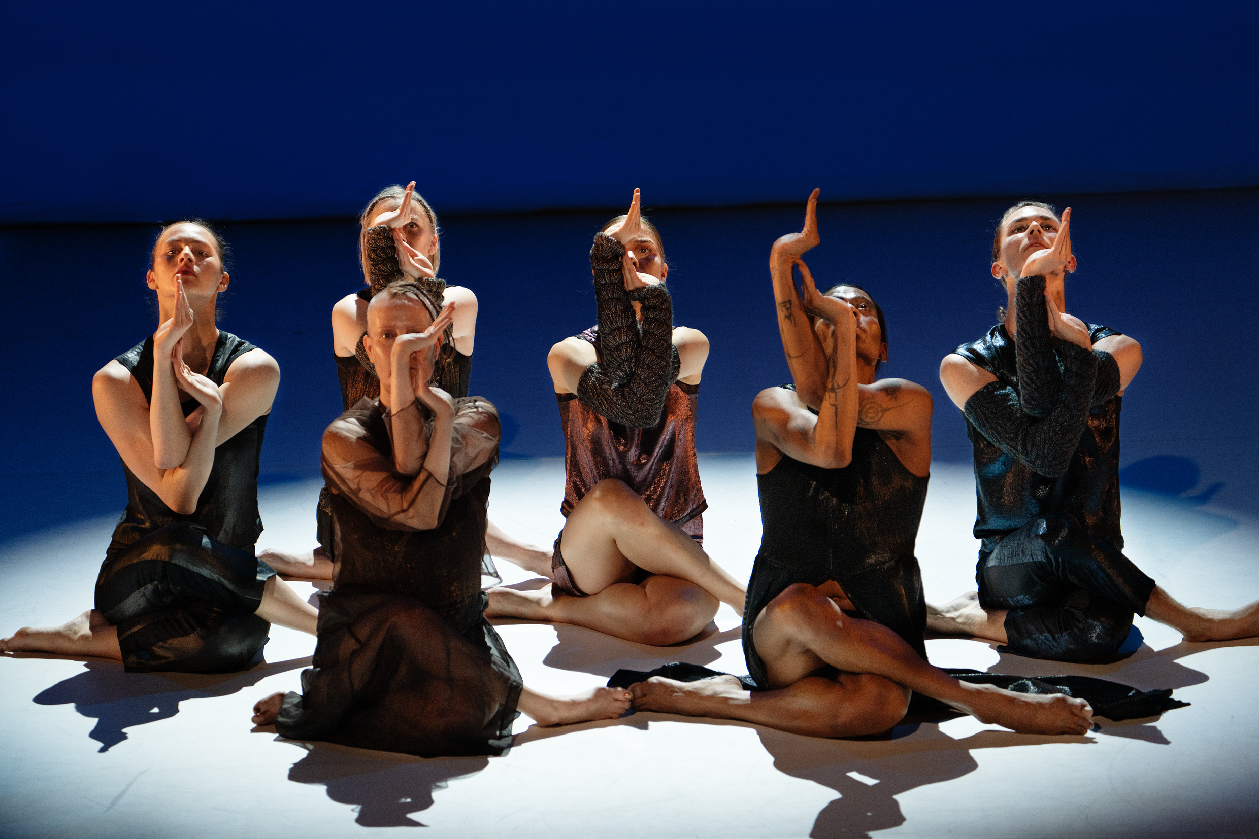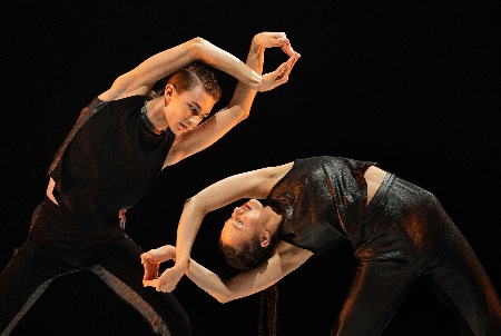 De eleganta varelserna på scen, skimrande i svart och brons, mot omväxlande blå, rosa, lila och svavelgul fond är insnärjda i sig själva men når ut genom kalejdoskopiska kroppsliga förändringar.