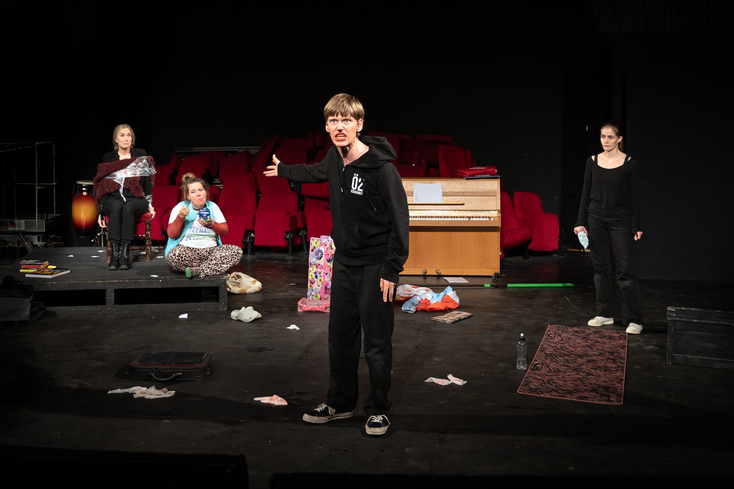 Teaterterroristerna ges på Boulevardteatern, Götgatan, Stockholm till och med 15 oktober 2023. Regi: Hanna Nygårds. Fritt efter originalmanus av Michael Segerström. Medverkande: Lotti Törnros, Nils Wetterholm, Teresia Pettersson, Felicia Löwerdahl. Ljusdesign: William Wenner. Föreställningsfoto: Kevin Chang. Producent: Felicia Löwerdahl, Teresia Pettersson.