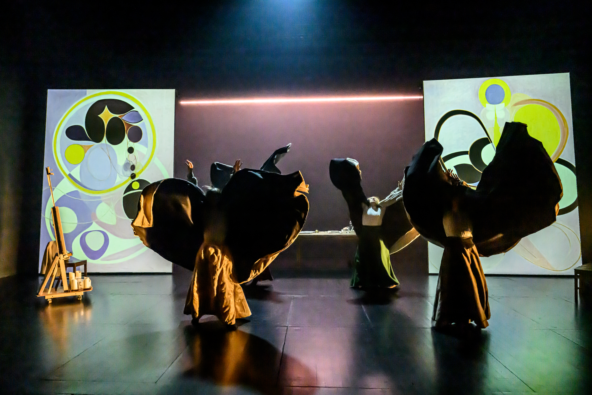 Inslagen av expressiv utrycksfull dans accentuerar den fysiska ansträngning som det måste ha varit att åstadkomma de jättelika målningar som Hilma af Klint med hjälp av sina väninnor gjorde under den period, 1906-1908, som pjäsen täcker. Skådespelarna utför den för dem specialgjorda koreografin förvånansvärt väl och Sofia Papadimitriou Ledarp som Hilma af Klint framstår som en fullfjädrad dramatisk dansare.